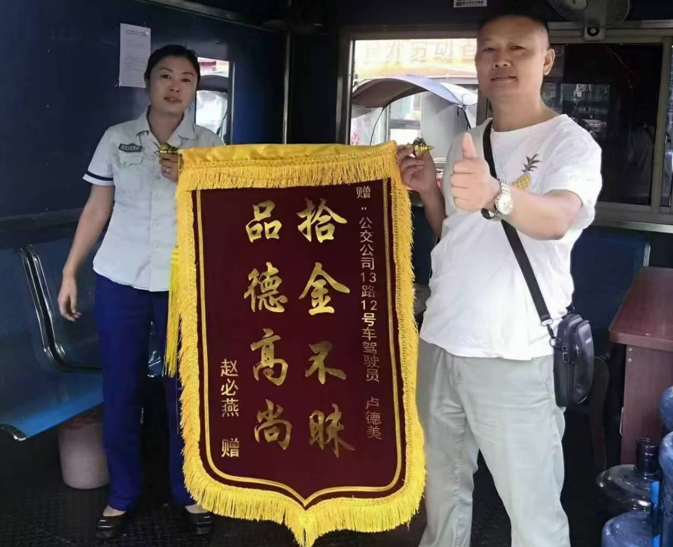 公交司机拾金不昧,万元现金物归原主!